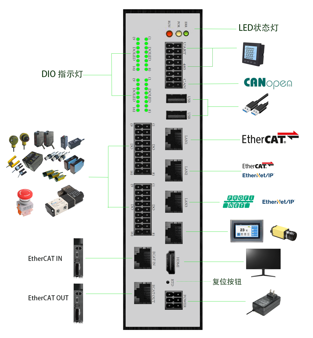 4路千兆以太网,LAN1、LAN2支持EtherCAT |