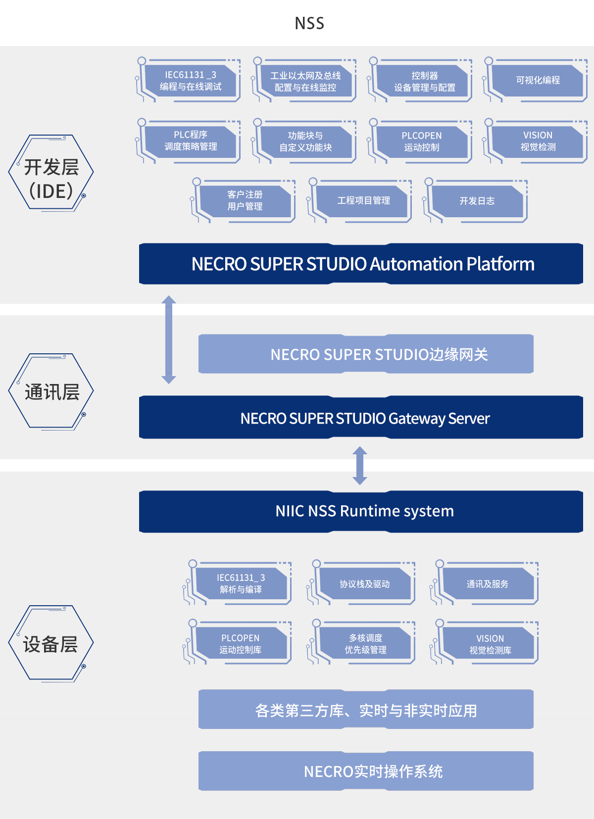 NSS(NECRO Super Studio)是基于B/S架构和IEC 61131-3国际编程标准的,面向工业4.0及智能制造的工业自动化软件开发平台。